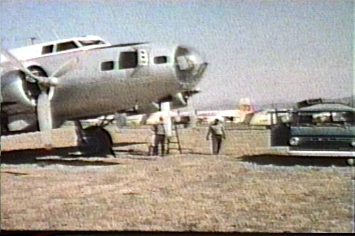 Mechanic Bob Duty and his assistant Gene fix an oil leak on B-17G N3702G, Tanker 61 with TBM, Inc. at Hemet Field, California. (09/26/75)