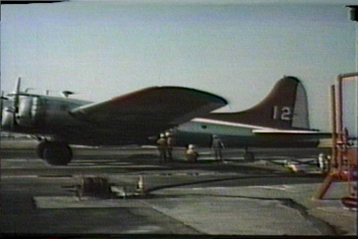 Ground crew prepare to service B-17G Tanker 12 with borate. Hemet Field, California. (08/78)