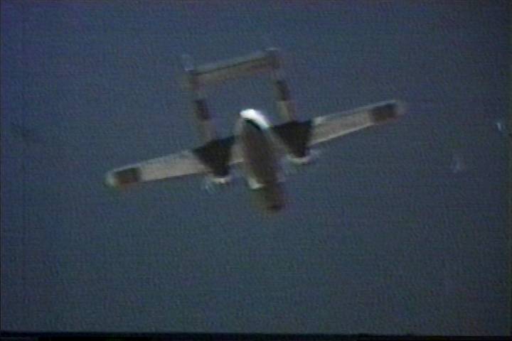 C-119 Tanker on final approach for another Borate drop over fire near Riverside, California. (08/78)