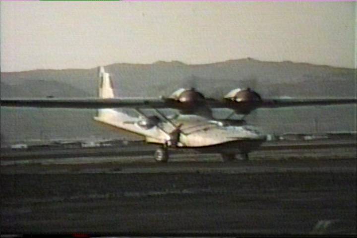 PBY Catalina Tanker 85 taxis in after landing at Hemet Field, California. (08/78)