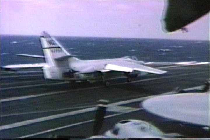 EKA-3B Skywarrior of VAQ-130 misses the wires on landing attempt. U.S.S. Constellation, CVA-64. (11/14/71).