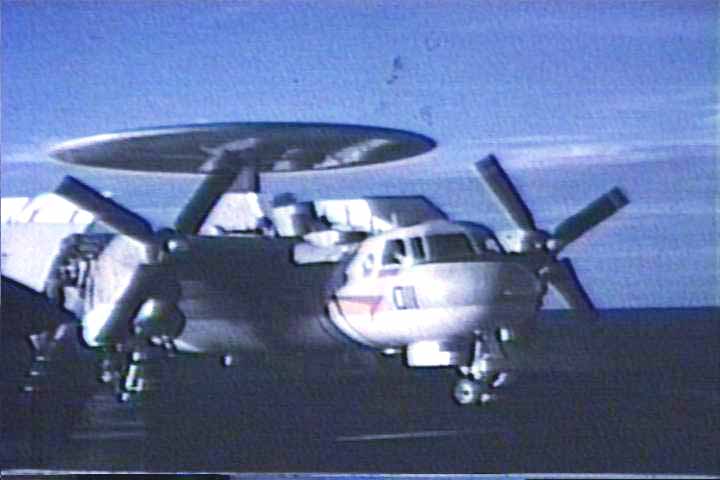 Grumman E-2B Hawkeye of VAW-114 sits on the deck of U.S.S. Kittyhawk (05/72).