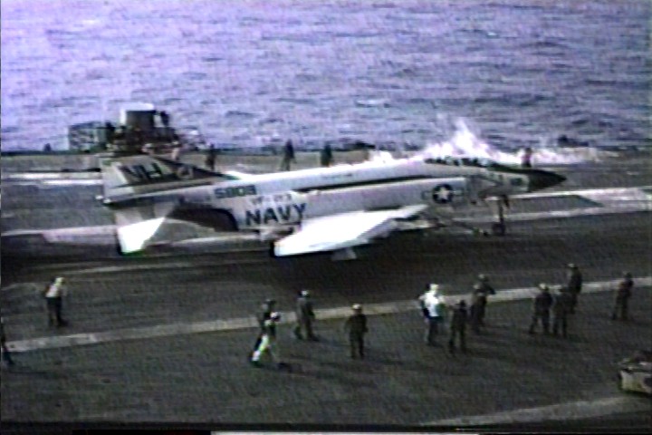 F-4J Phantom of VF-213 prepares to launch from U.S.S. Kittyhawk. (05/72).