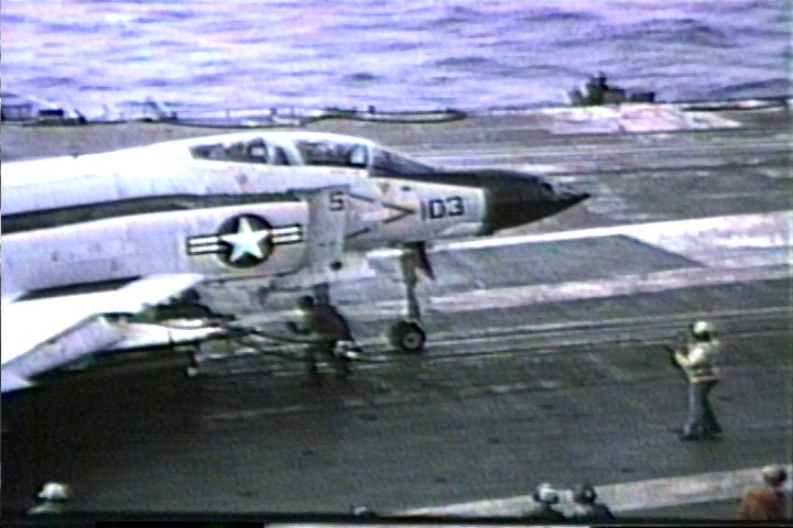 F-4J Phantom 103 of VF-213 prepares to launch from U.S.S. Kittyhawk. (05/72).