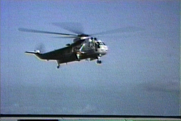 Sikorsky SH-3G Sea King from HC-1 Det 1 approaching angle deck of U.S.S. Kittyhawk, CVA-64. (06/72)
