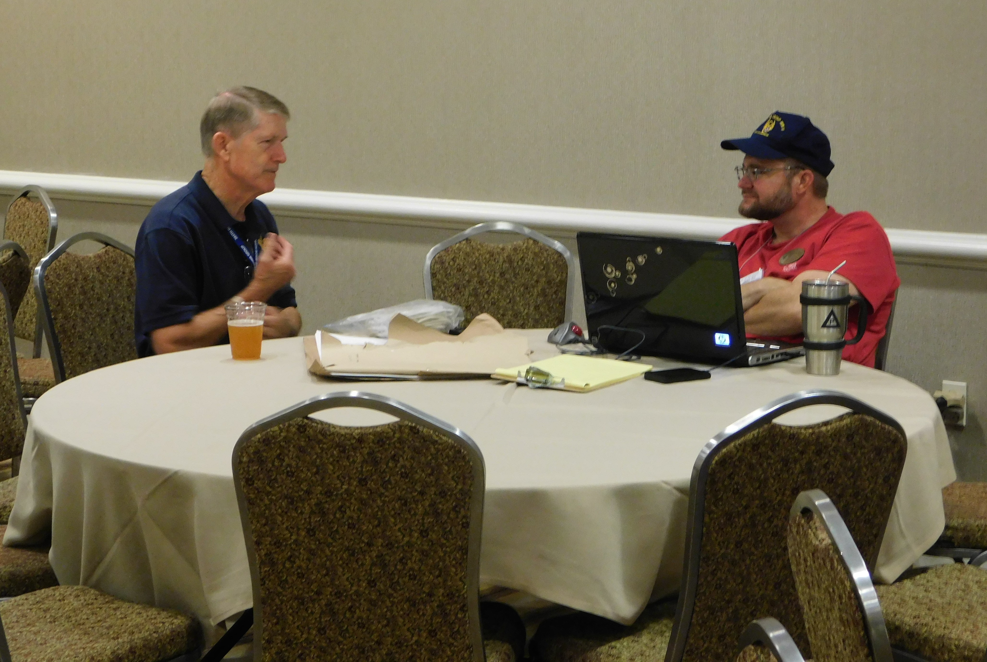 Frank Alfter, Group President, and John Edwards, Group Historian, discuss important issues.