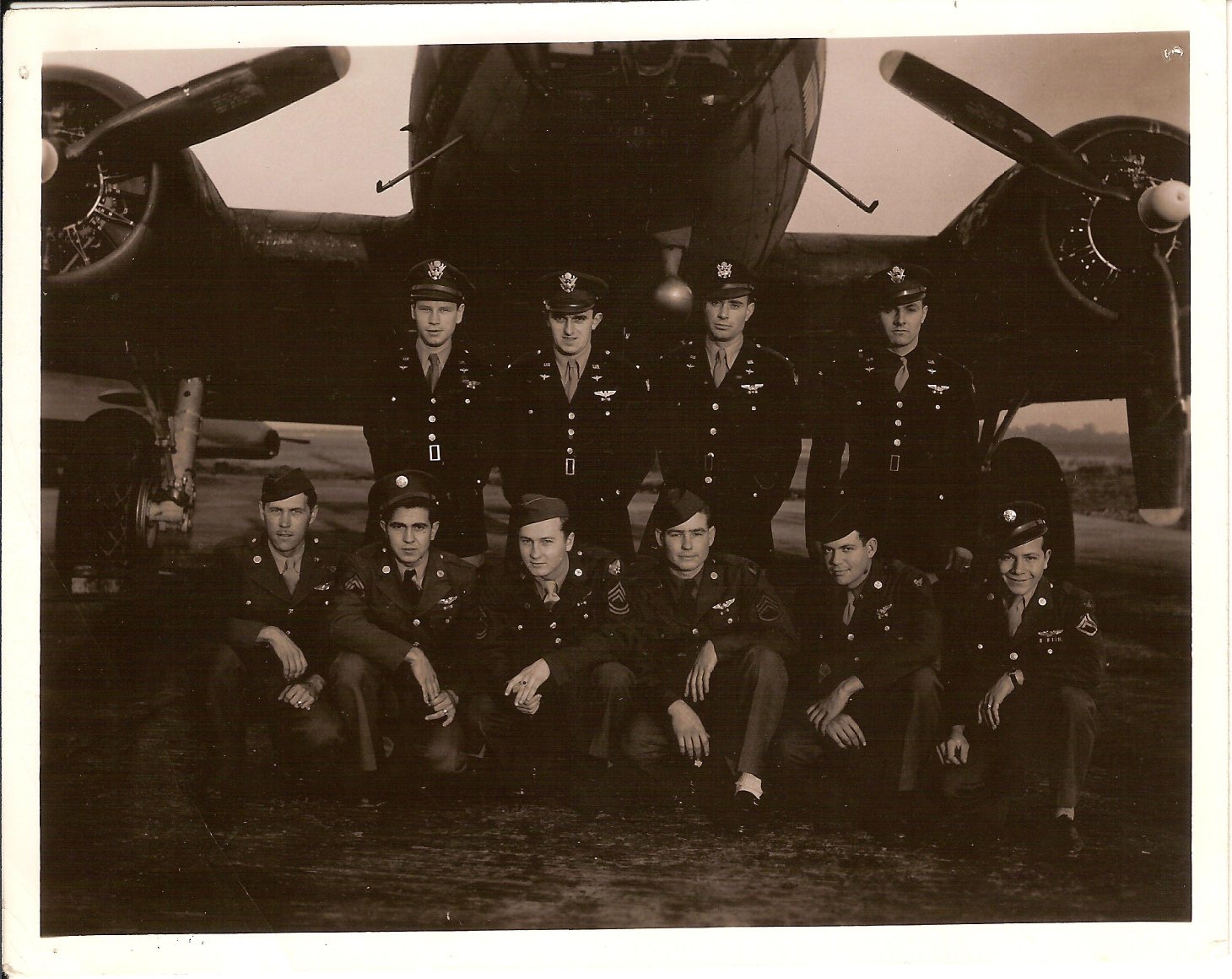 Front L-R: Sgt. Ralph Voorhees (FG), Sgt. Alvin Renfro (TG), Sgt. George Carroll (RO), Sgt. Fillman Thurman (BT), Sgt. Lloyd Estes (TT), Sgt. Michael Polito (FG)