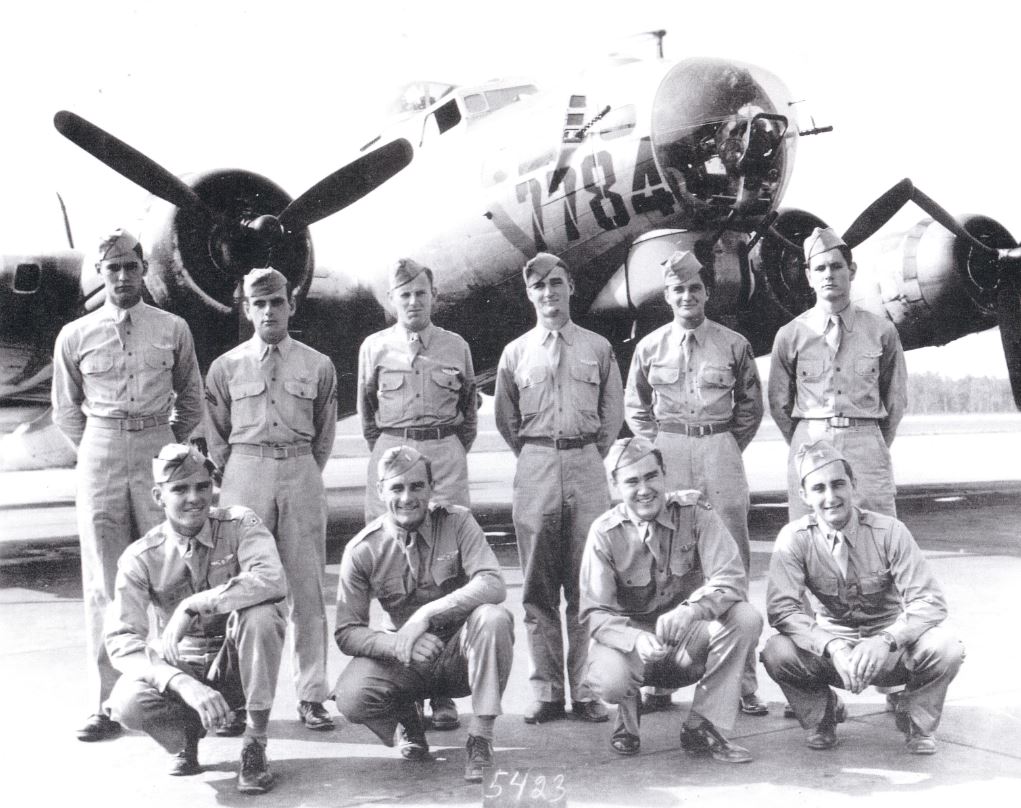 Standing L-R: Robert Gissing (ENG/TT), Warren D. Reed (RO), Edward J. McMorrow (FG), Melvin E. Holtwick (BT), David D. Wright (TOG/TG), Clyde DeLay Batte, (TG )